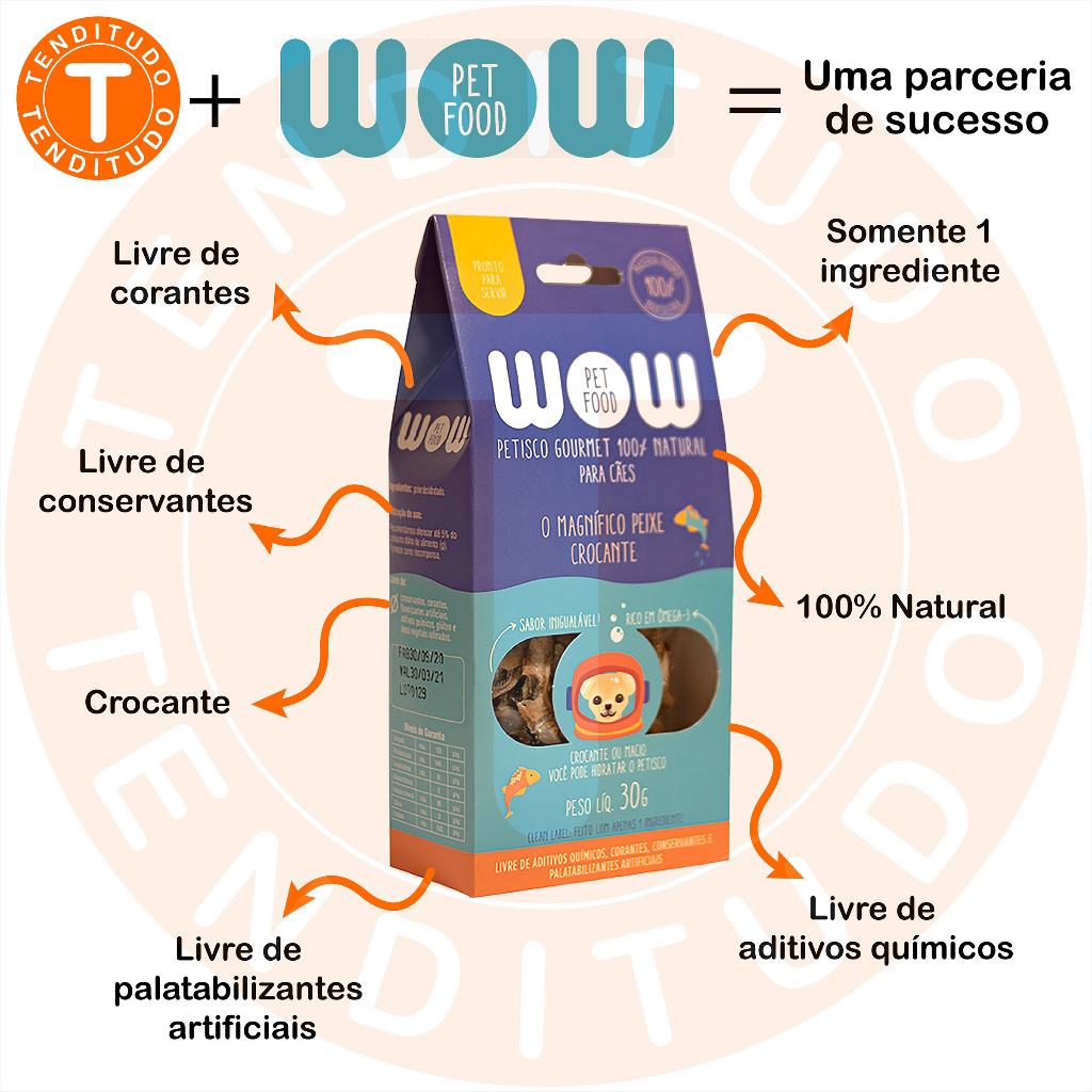 Petisco Natural Wow Pet Food Peixe Crocante Cães 30g
