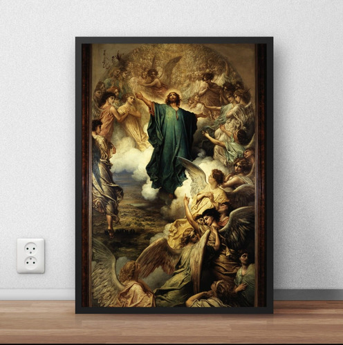 Quadro / Poster C Moldura Religioso Jesus Cristo Anjos P5158