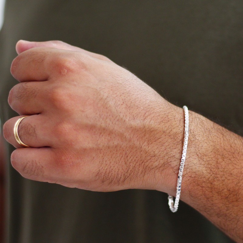 Pulseira de prata 925 Masculina Veneziana maciça 20cm 2,4mm