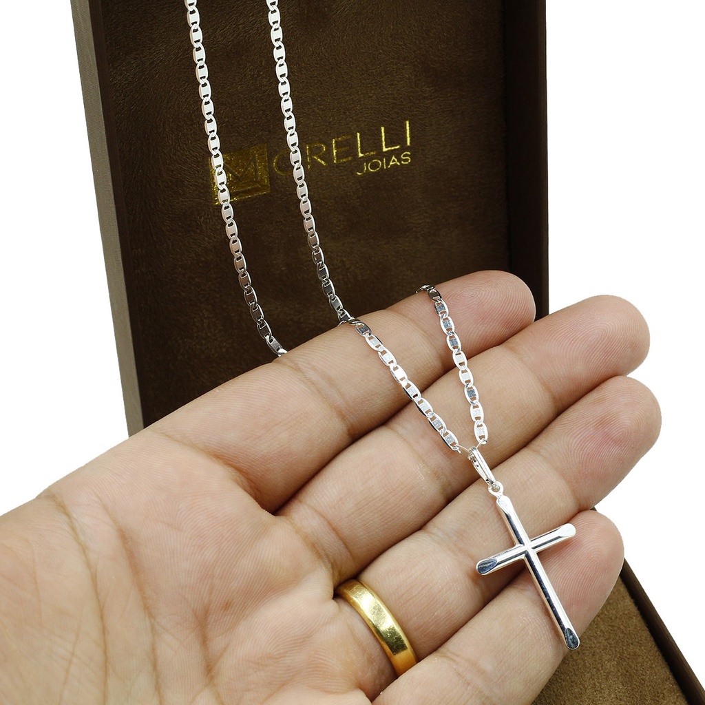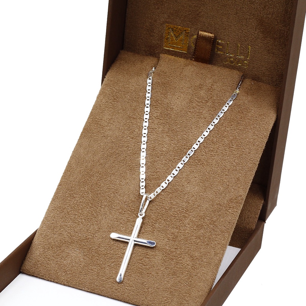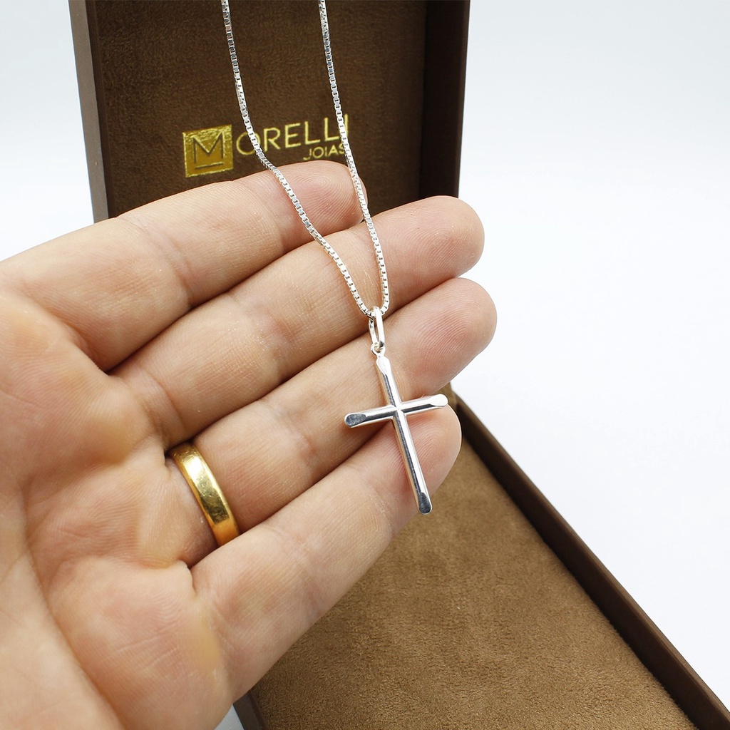 Pingente de Prata 990 Masculino Cruz lisa meia cana