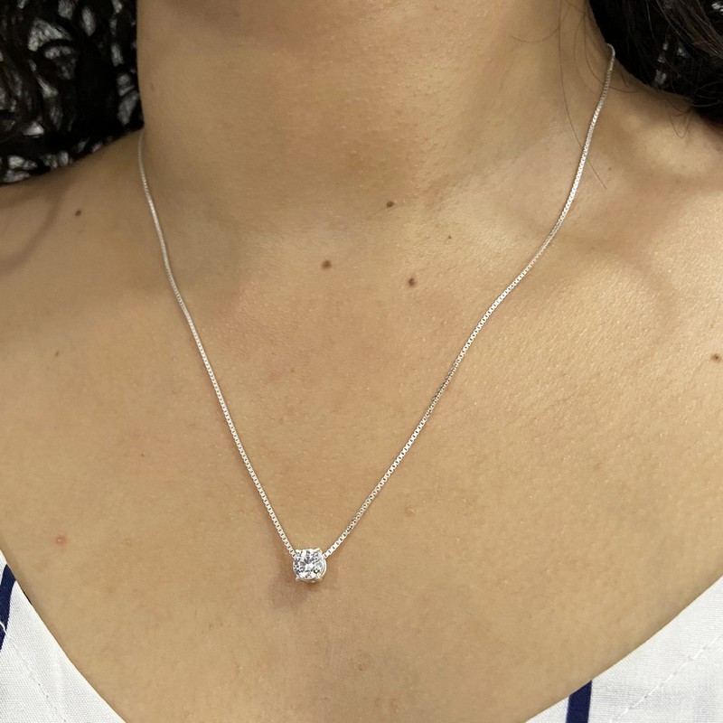 corrente De Prata 925 Feminina Veneziana 50cm + pingente Ponto De Luz 5mm