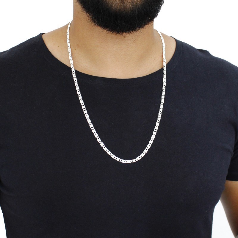 Corrente de prata 925 masculina grossa piastrine diamantada 70cm 4,5mm com garantia