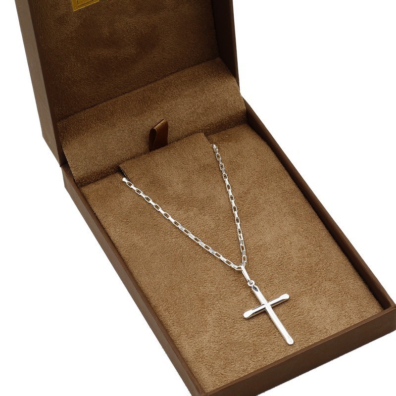 Corrente de prata 925 malha cartier 70cm pingente crucifixo liso