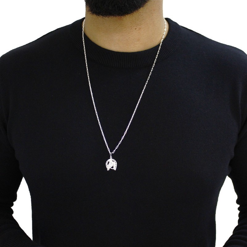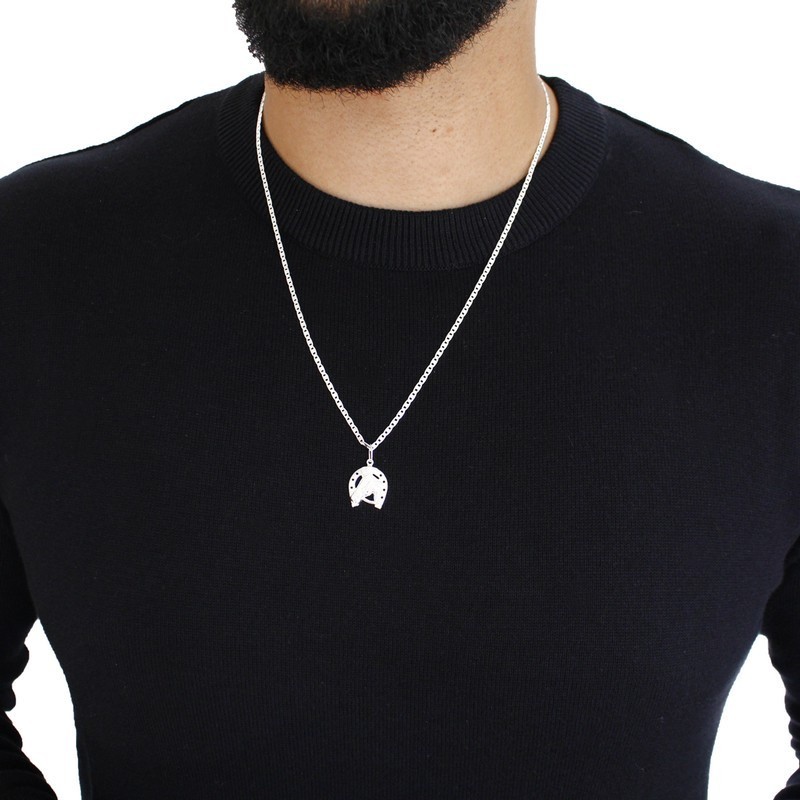 Pingente de prata 925 Masculino Ferradura Cavalo