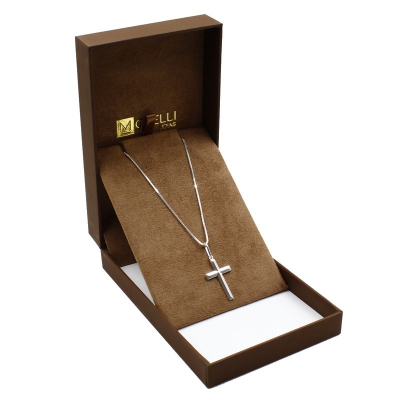 Corrente cordão de prata 925 Masculina Veneziana 70cm pingente cruz lisa quinada