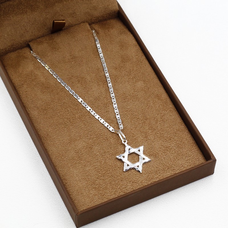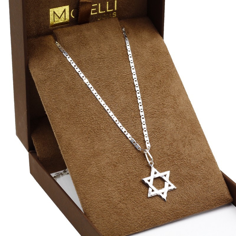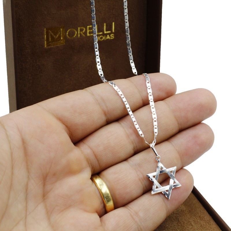 Corrente De Prata 925 Masculina Piastrine 60cm pingente Estrela De Davi