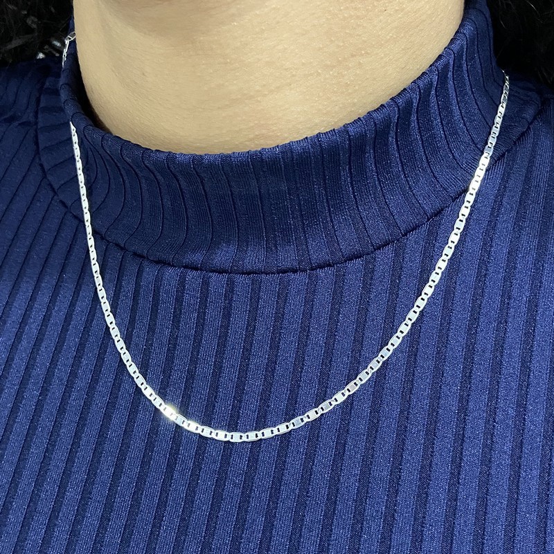 Corrente de prata 925 feminina piastrine 45cm 2,1mm diamantada