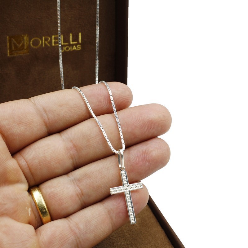 Pingente de prata 925 Masculino cruz crucifixo pontilhado