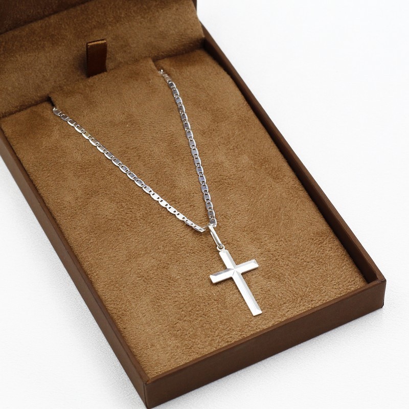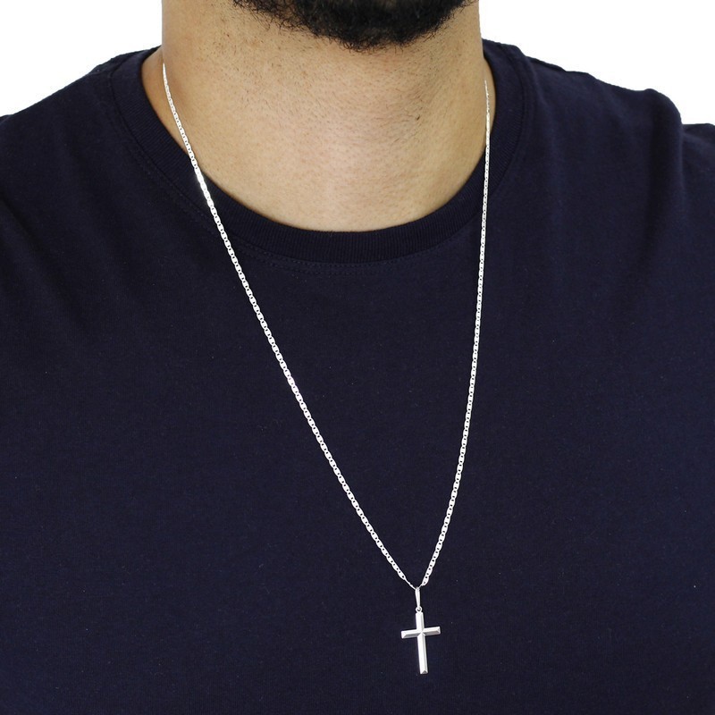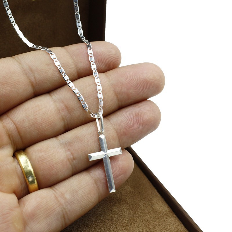 Corrente De Prata 925 Masculina Piastrine Pingente Crucifixo liso quinado
