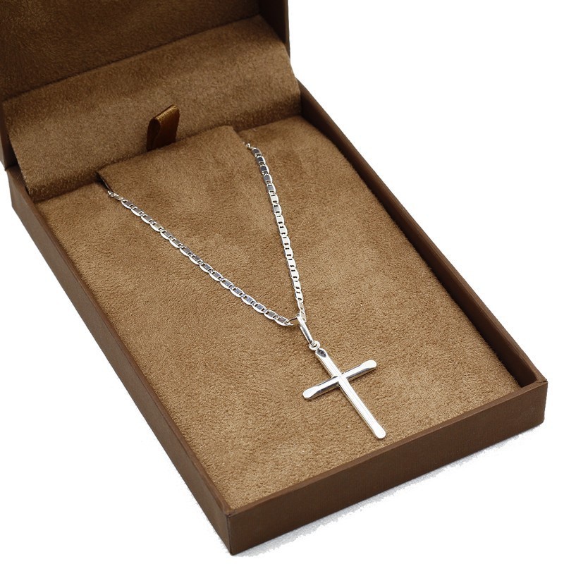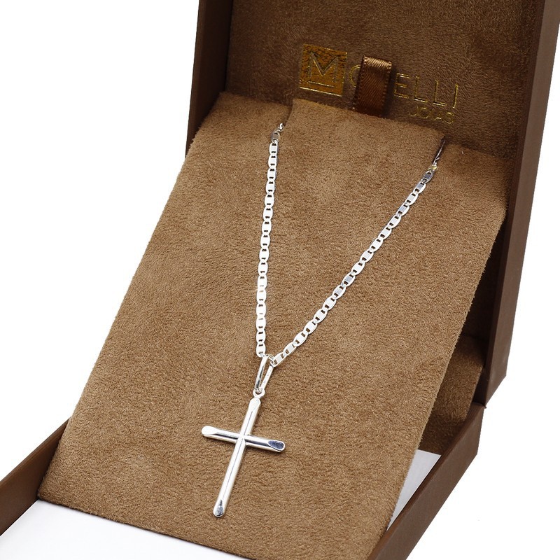 Corrente De Prata 925 Masculina Piastrine 60cm Pingente Crucifixo liso