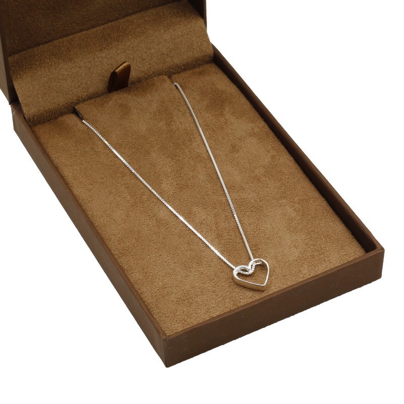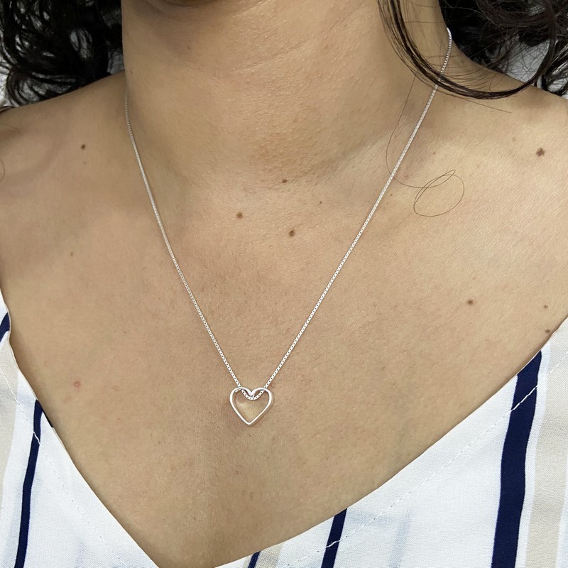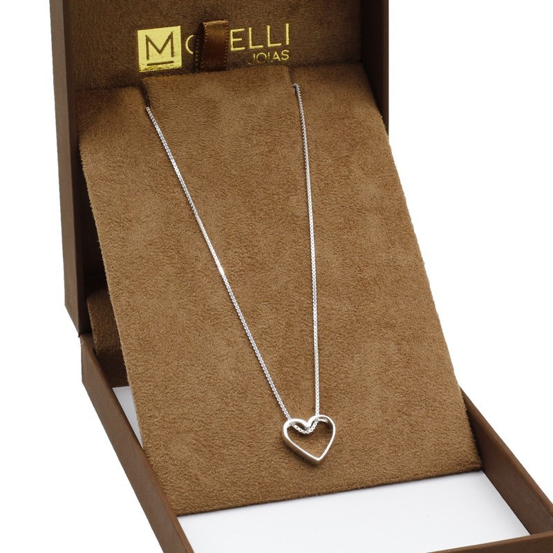 Corrente Colar cordão De Prata 925 Feminino Veneziana 45cm Pingente Coração vazado