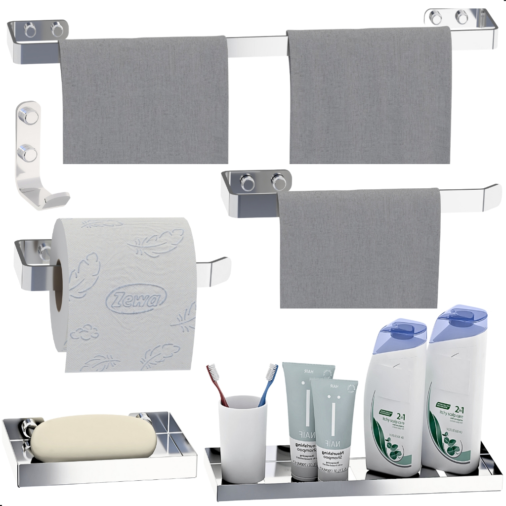Kit Acessórios Para Banheiro Cromado 6 Peças