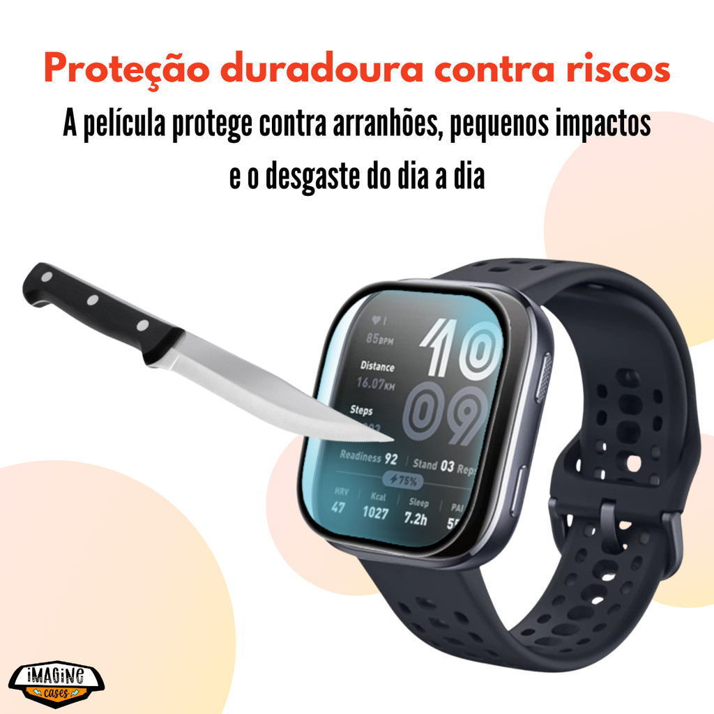 Kit 3x Película de Tela para Amazfit Bip 6 A2435 Proteção 3D Nano Gel Alta Transparência Anti Riscos