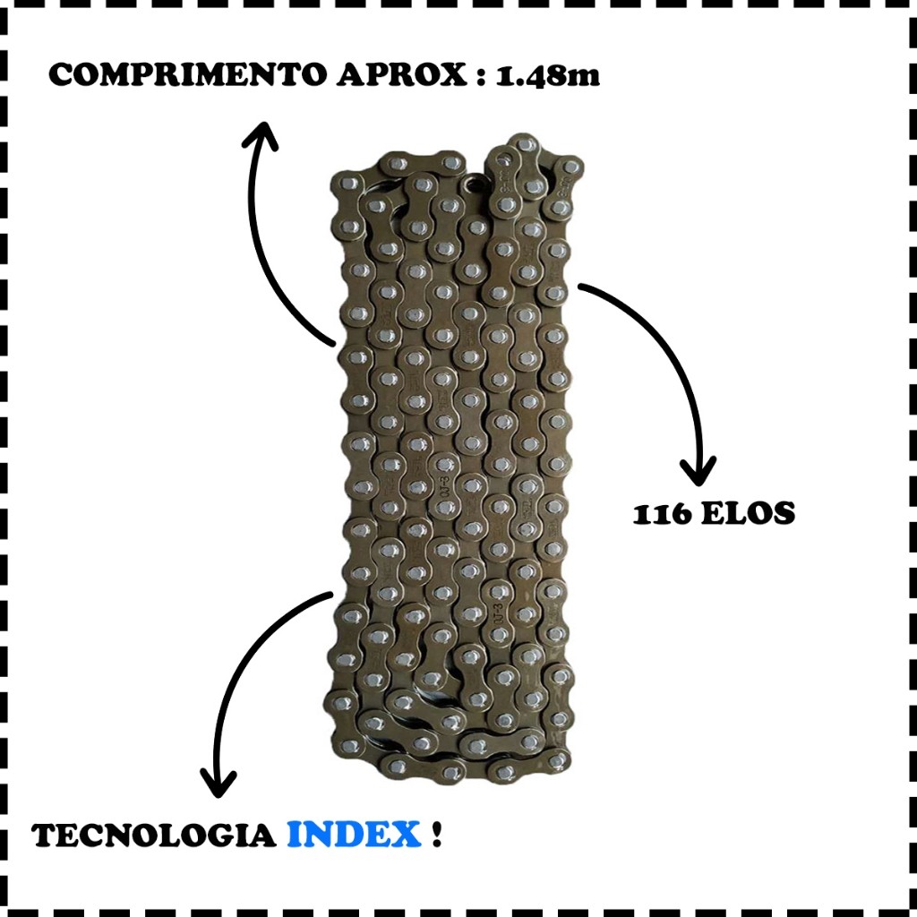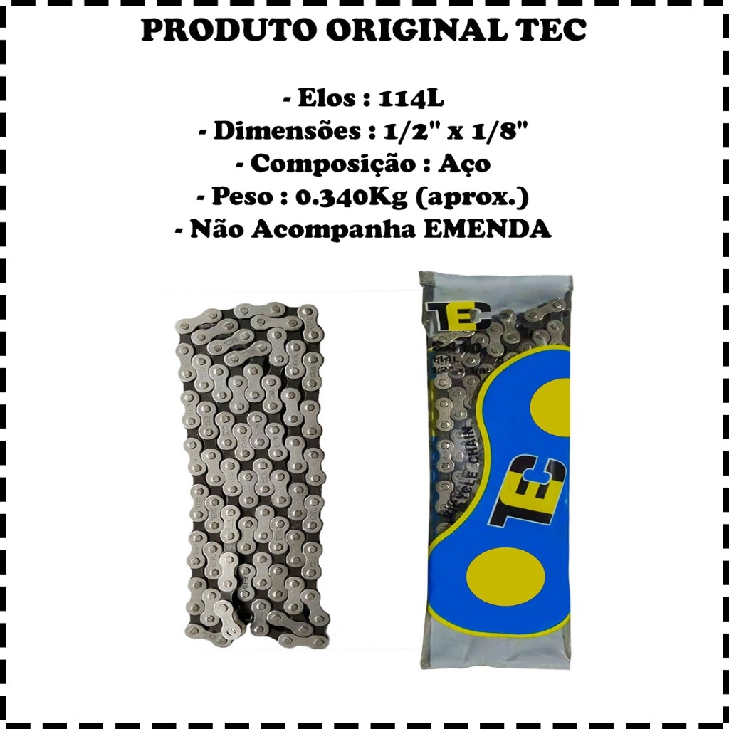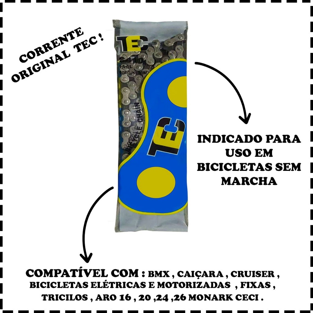 Corrente Grossa Tec 114 Elos Para Bike Bicicleta Sem Marcha Original TEC
