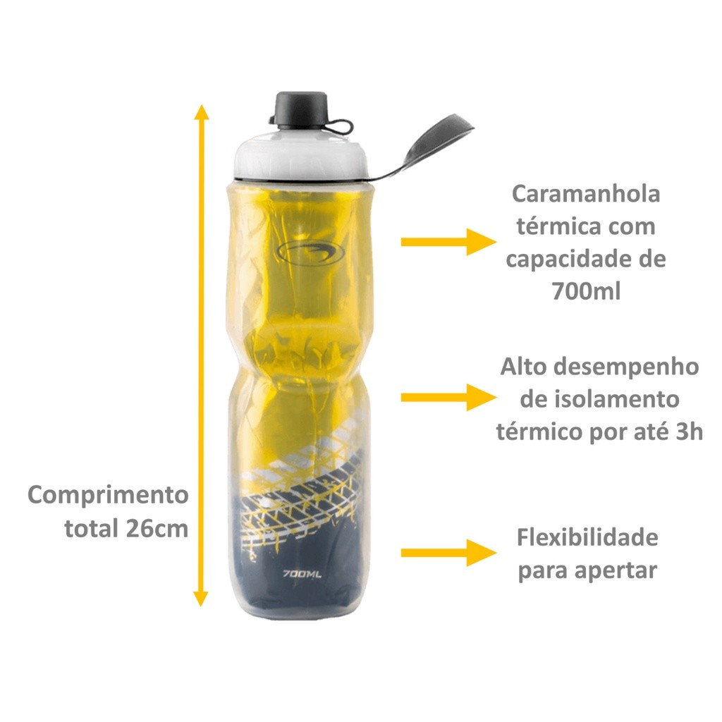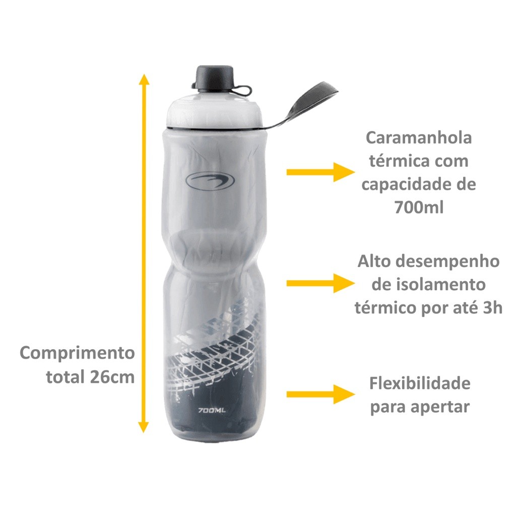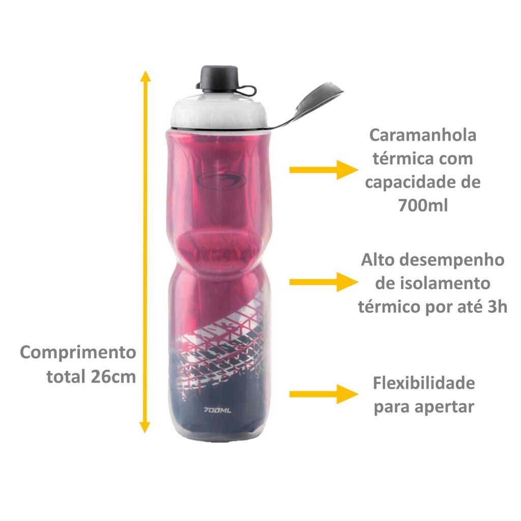 Kit Bike PTK Garrafa Caramanhola Térmica 700ml + Suporte bicicleta