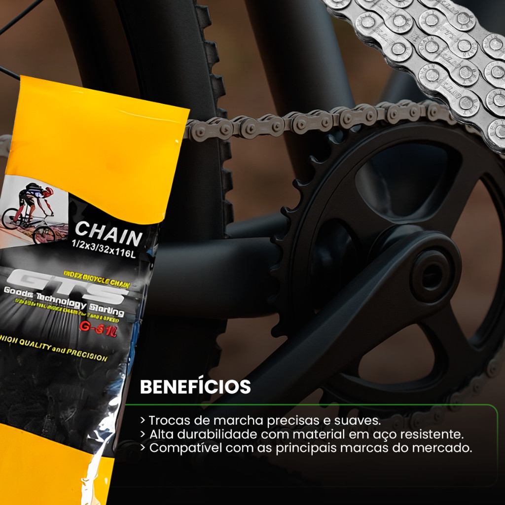 Kit de Corrente Gts e Catraca 7v 21 Marchas Corrente G-51l Index Prata 7 Velocidades 116 Elos