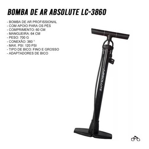 Bomba De Ar Absolute Grande Metálica Oficina Para Bicicleta Bike Mtb Mountain Bikec De Pé