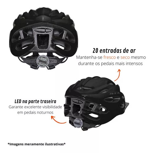 Capacete Bike Pisca Pisca Led Ciclismo Mtb Preto Gta M (54 à 58cm)