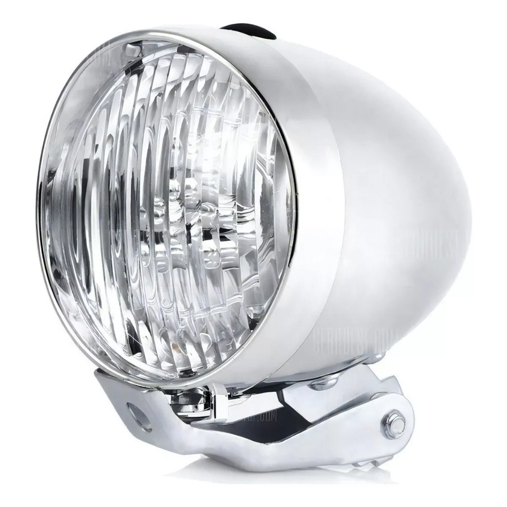 Farol Dianteiro C/ 3 Led Vintage Retrô Cromado Bicicleta