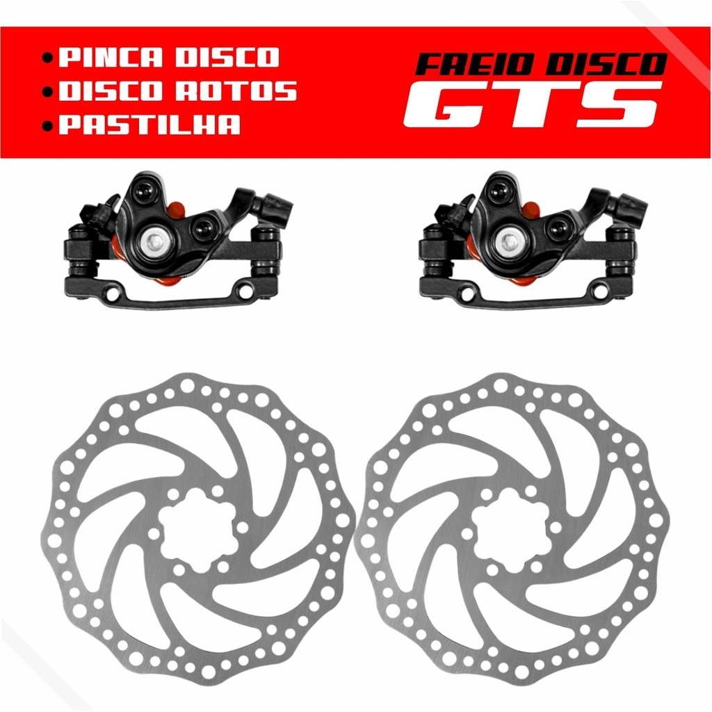 Kit Freio A Disco Mecânico Conjunto Completo (Par) Pinça e Disco Rotor Gts