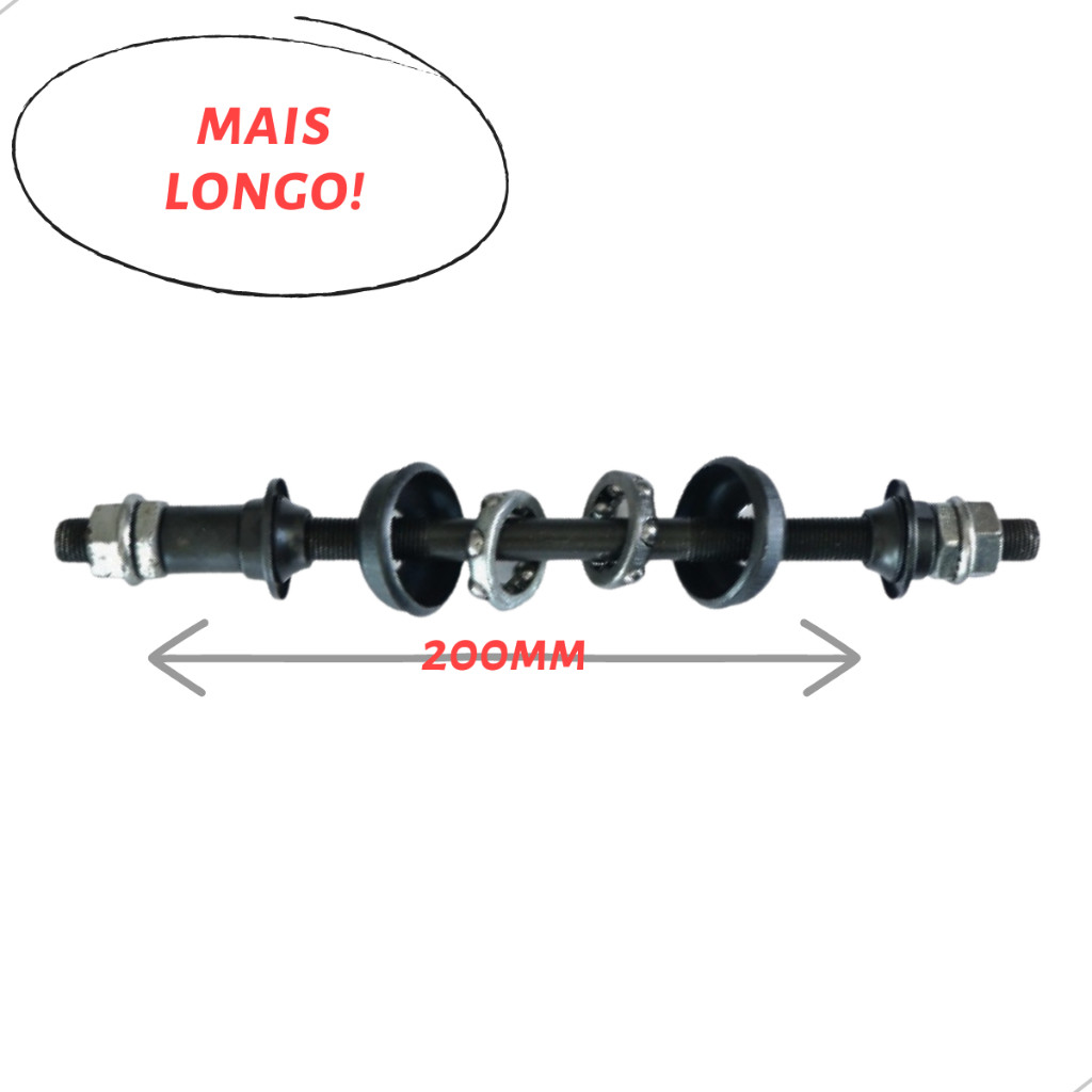 Eixo Traseiro Marcha Completo 200mm Caixas Colares Aço Bike - Eixo longo Grande