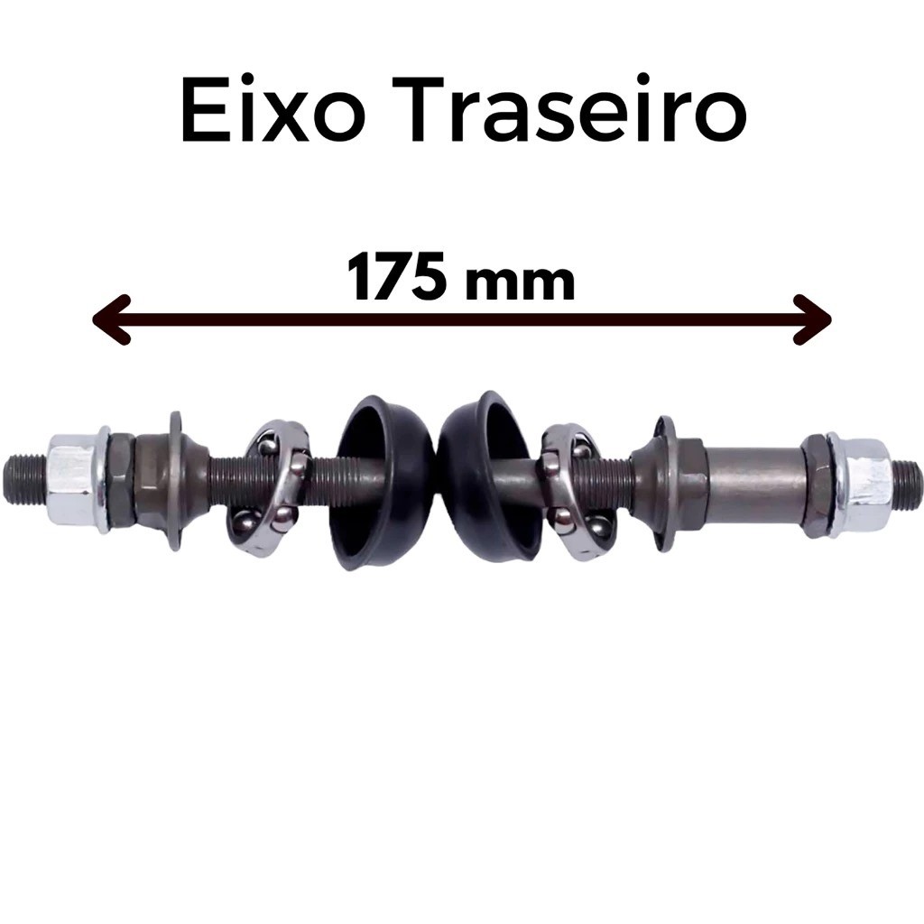 Eixo Traseiro Reforçado Completo 175mm Preto Bicicleta Bike