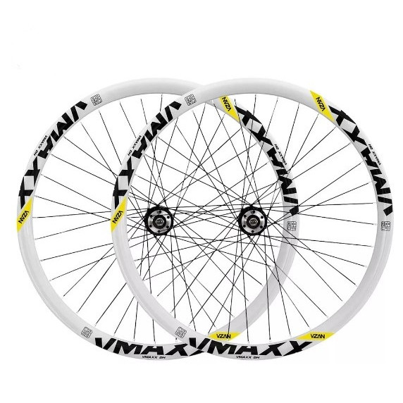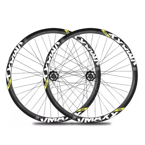 Par Vzan Vmaxx 26 Montado Dh P/Freio A Disco + Raios Finos Pretos +Cubos Aço 36F Esferado Eixo Porca