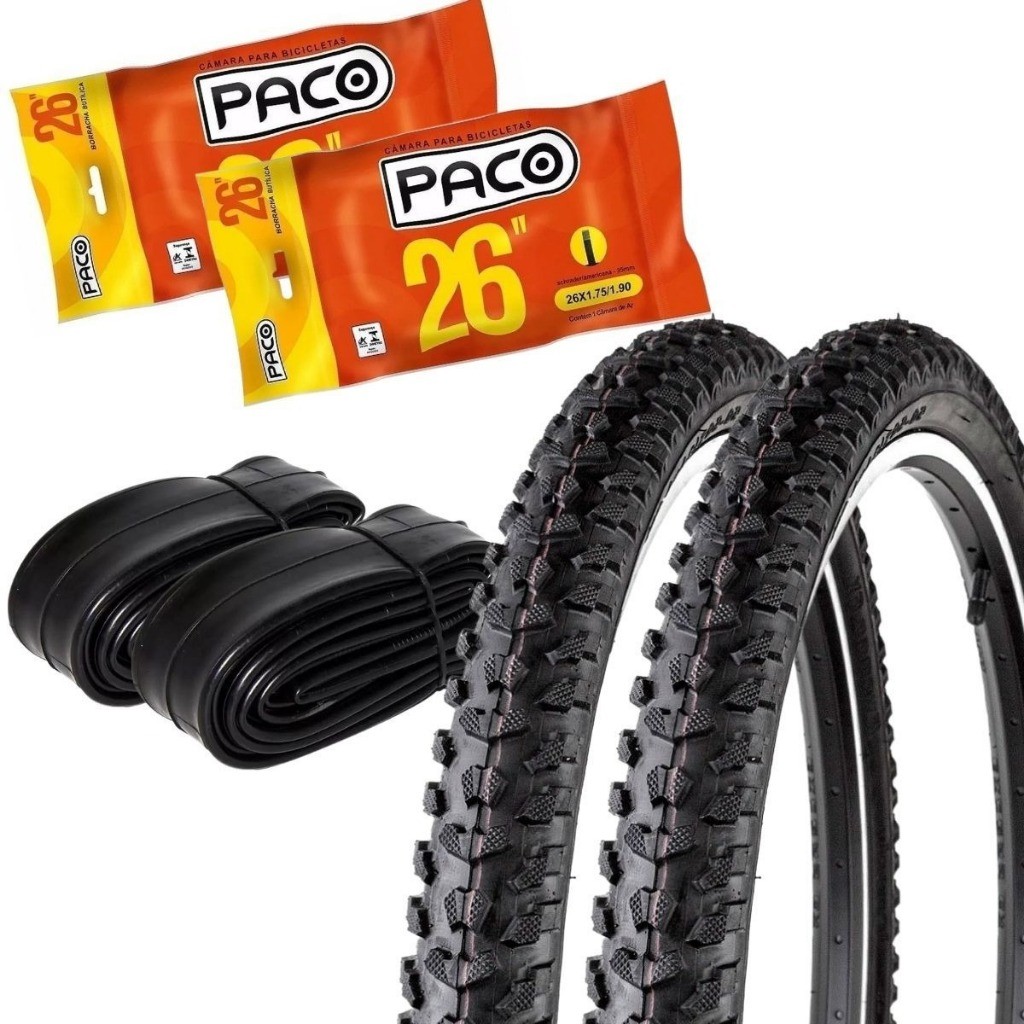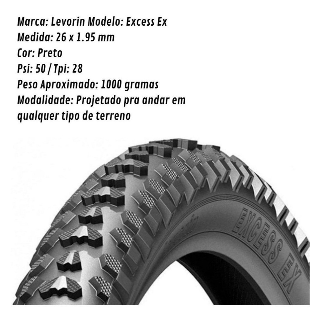2 Pneus Levorin Excess Ex Aro 26x1.95 + 2 Câmaras Aro 26 Paco Bico Brosso