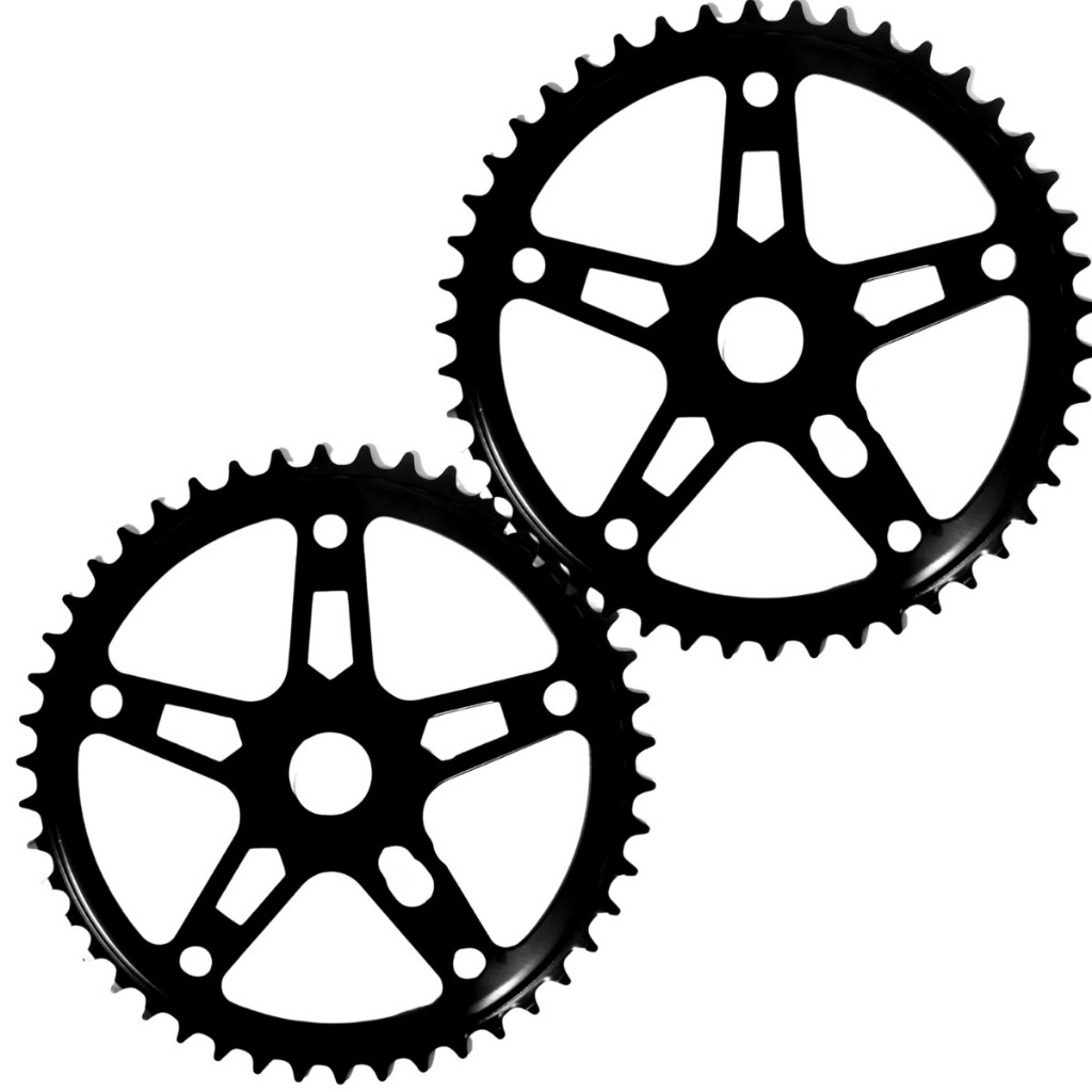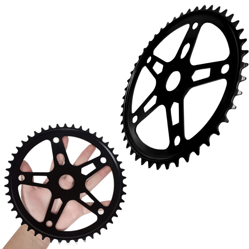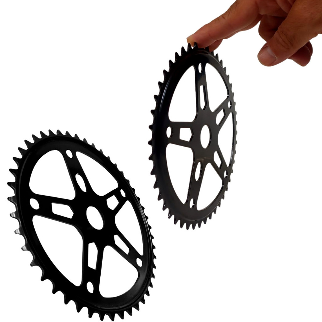Kit 2 Coroas Roda Dentada Engrenagem 46 Dentes Grande 5 Furos Preta Para Bicicleta Aro 26 24 20