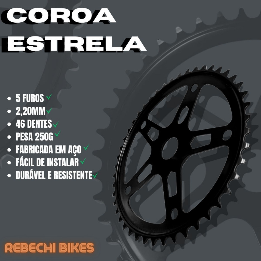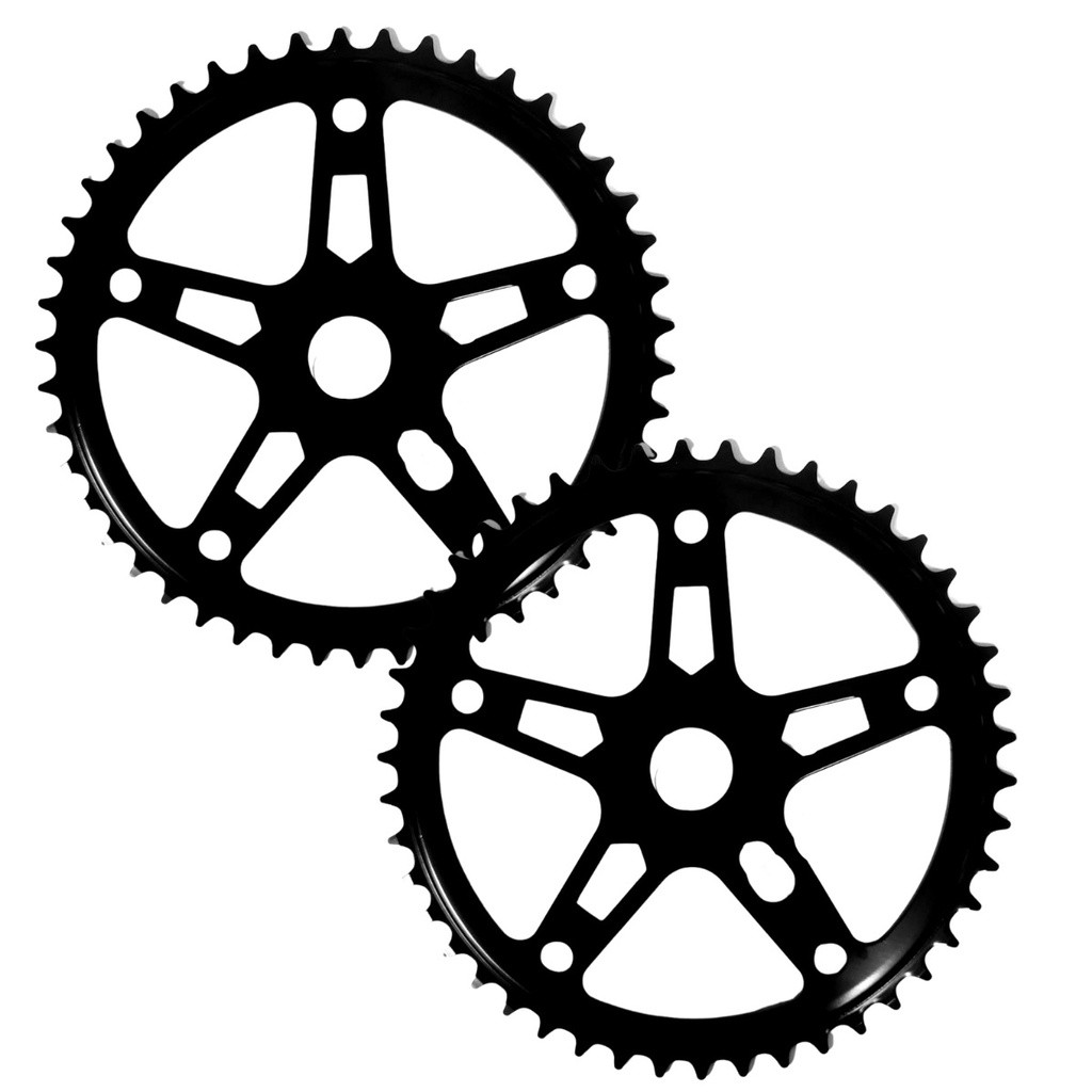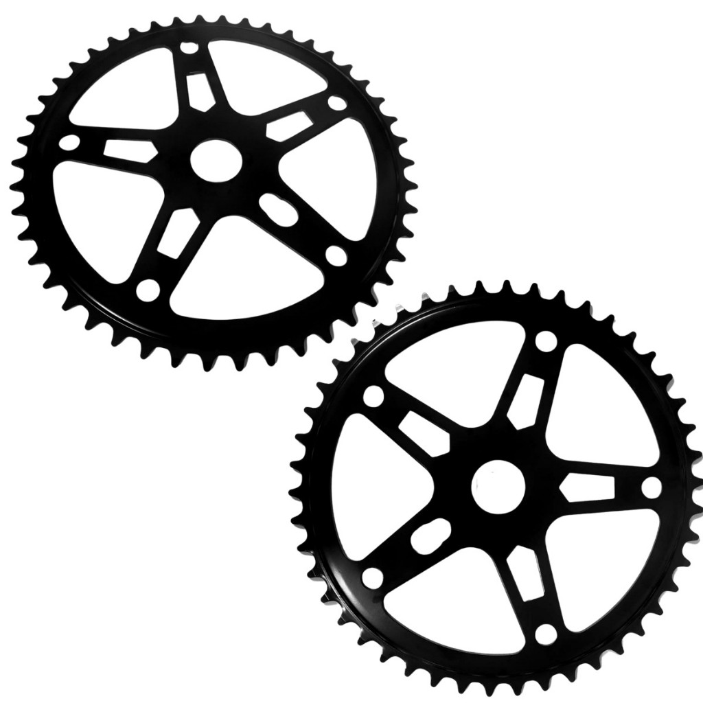 Kit 2 Coroas Roda Dentada Engrenagem 46 Dentes Grande 5 Furos Preta Para Bicicleta Aro 26 24 20