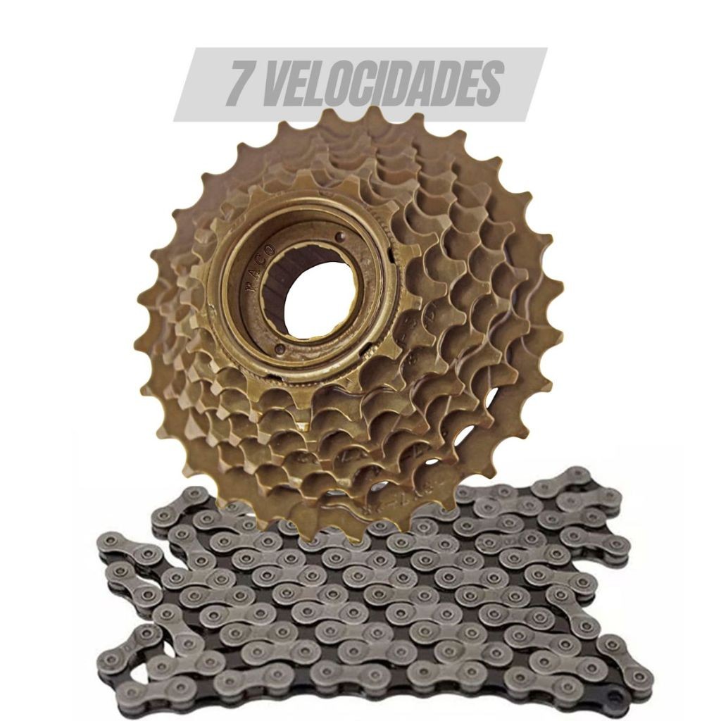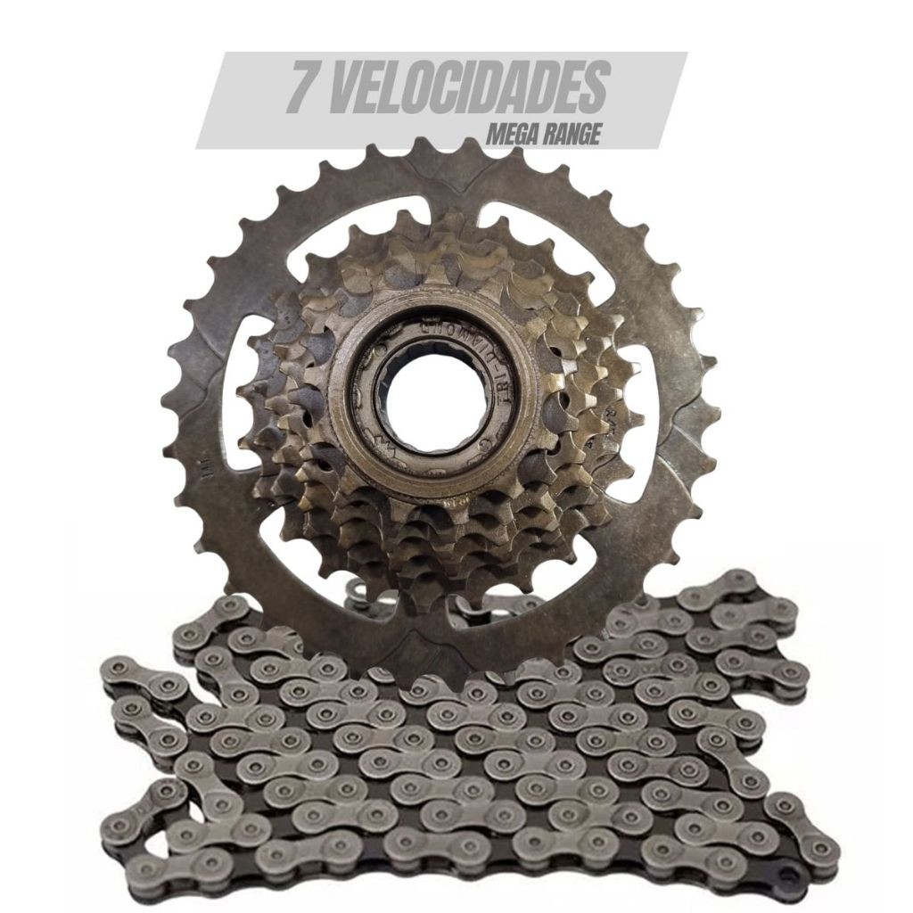 Catraca Roda Livre 7 Velocidades Index 13/34 Dentes Bike com Corrente 7 index ou sem