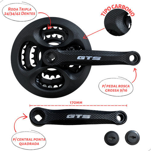 Coroa Tripla Pedivela Gts P/ Bike Encapado Aro29/26 + Centro