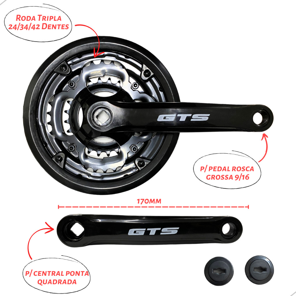 Coroa Tripla Pedivela Gts P/ Bike Encapado Aro 29, 26 e 24 Engrenagem 24/34/42 Dentes Reduzido