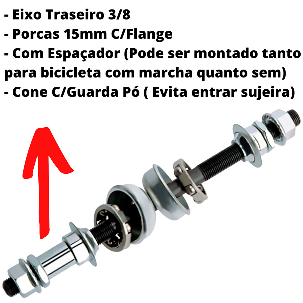 Eixo Traseiro Bike Completo Bicicleta 175mm C/Colares de Esferas e Bacias
