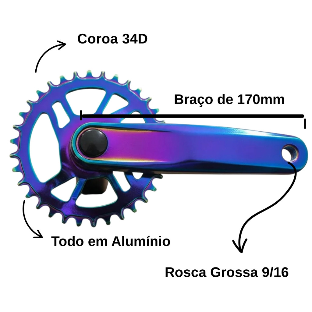 Pedivela Single 170mm 34D Camaleão Coroa Fixa Bike Mtb Grau