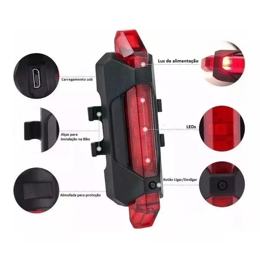 Sinalizador Traseiro Bike Led Usb Recarregável Bicicleta Mtb