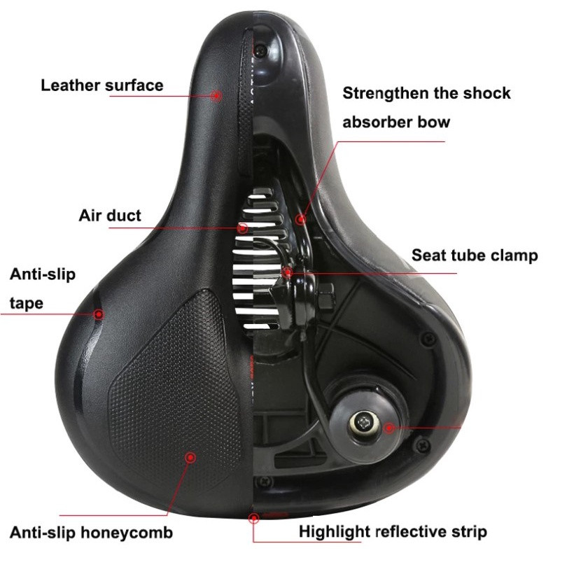 Assento De Bicicleta Banco Selim Super Confortável Selim Largo Bicicleta C/sinalizador adesivo Refletivo