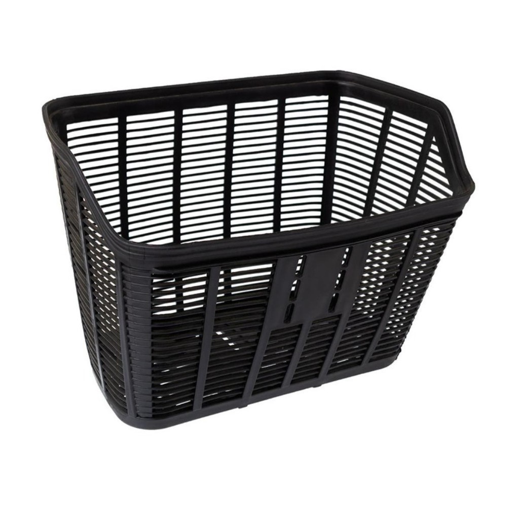CESTÃO DE PLÁSTICO NYLON PRETA BICICLETA ARO 20 24 26 COM HASTE 34X22X25CM CESTINHA GRANDE BIKE