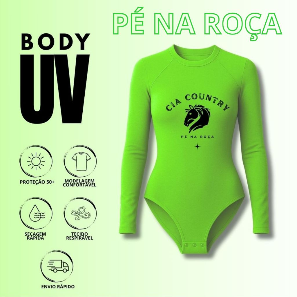 Pé na Roça Cia Country Body UV com proteção solar 50+ cavalgada, esportes, sol diversas cores PNR708