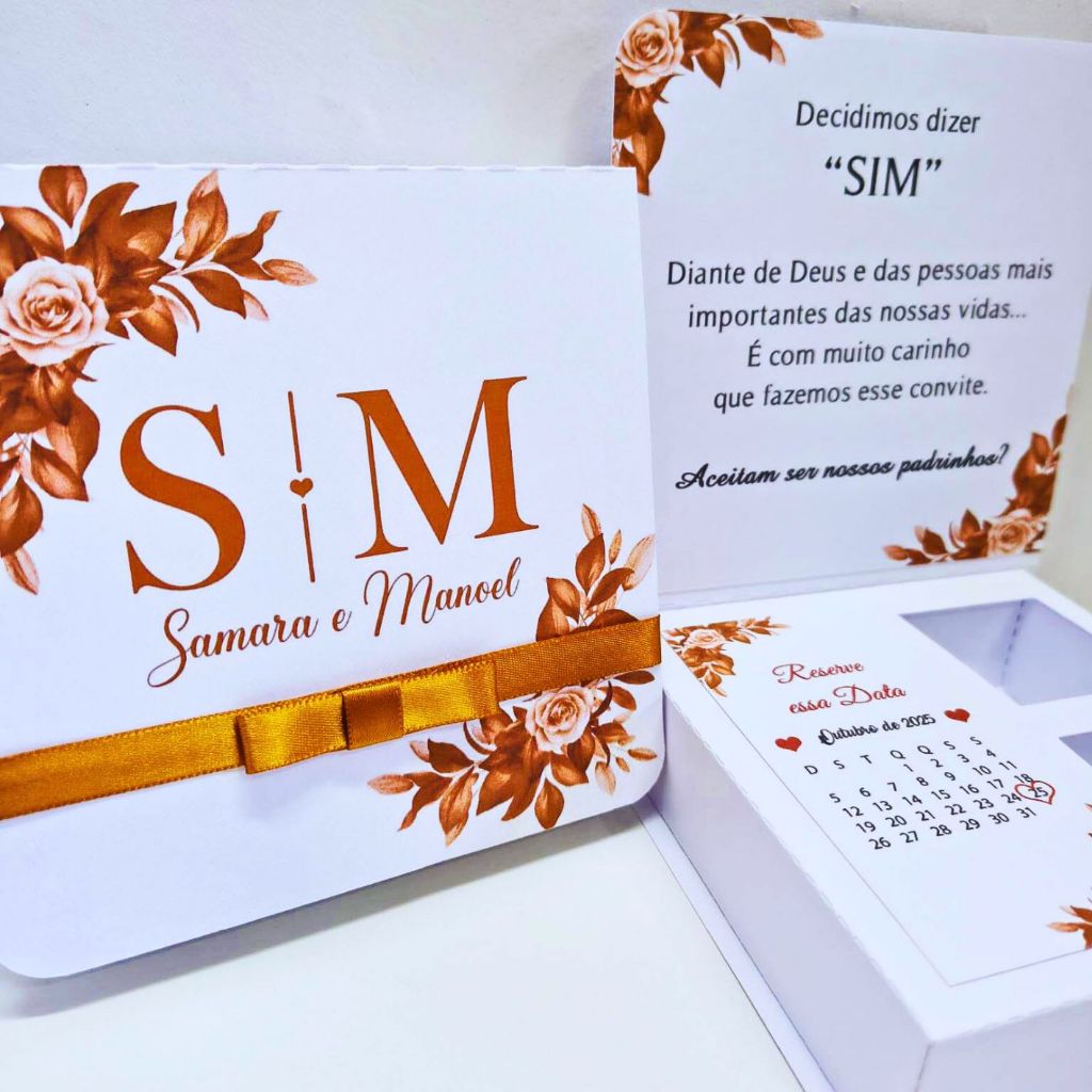 5 Convite para Padrinhos de Casamento Terracota - Caixa para Bombons - Padrinho - Madrinha - Civil