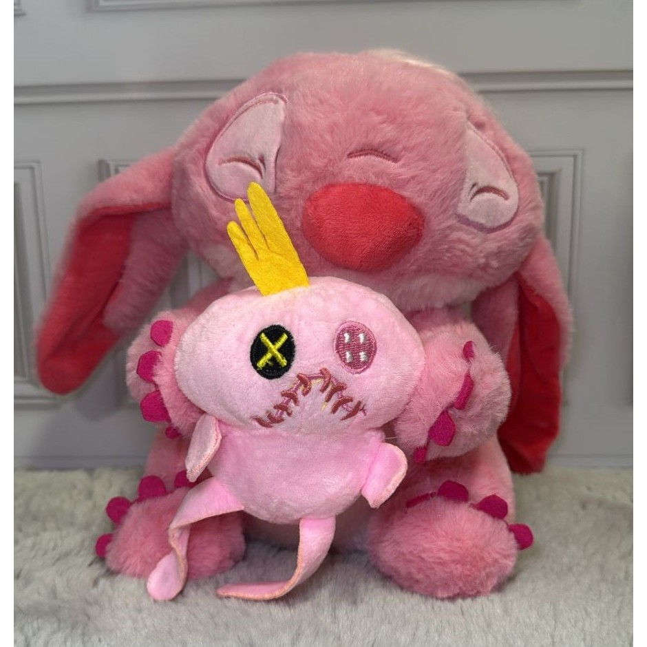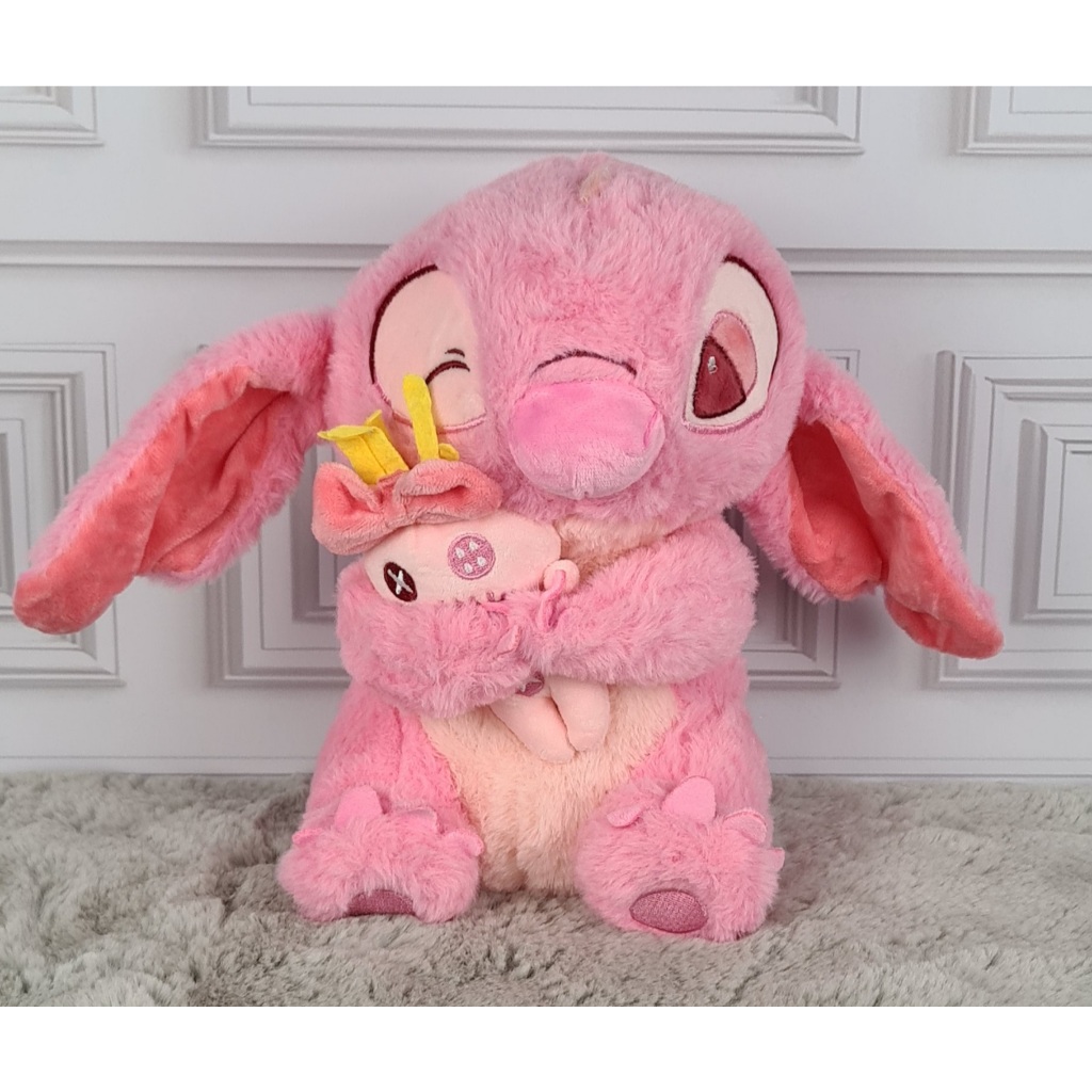 Pelúcia Stitch ou Angel 20cm 25cm 33cm Segurando Pato ou Xepa Brinquedo Kids Desenho