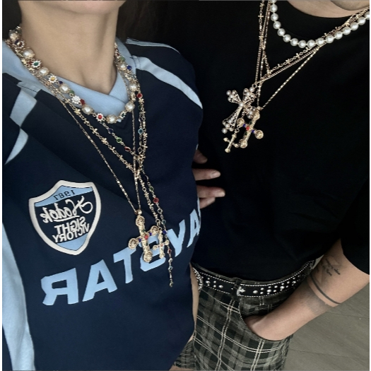 zhenngyou Colar Elegante Com Pingente De Cruz De Pérola De Diamante Cem Contas Personalizadas , Acessório De Férias