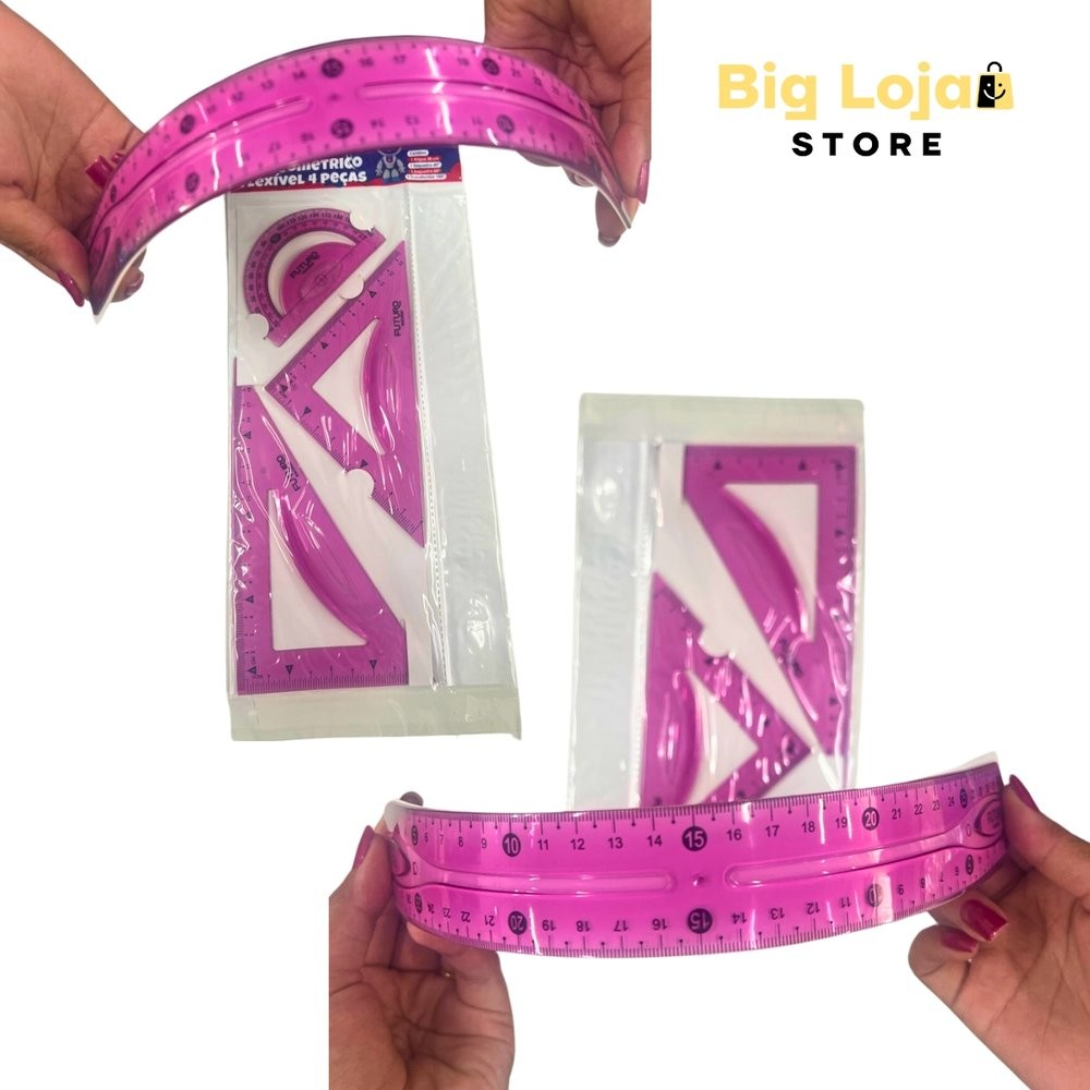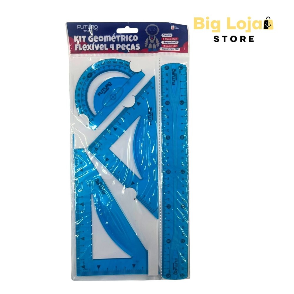 Kit Geométrico Flexível 4 Peças Régua 30CM Transferidor 180º e Esquadro De 45º e 60º