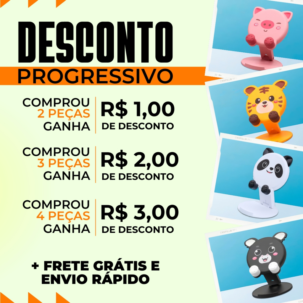 Suporte de Celular De Mesa Dobrável Bichinhos e Animais Fofos Ajustável Compatível Todas as Marcas