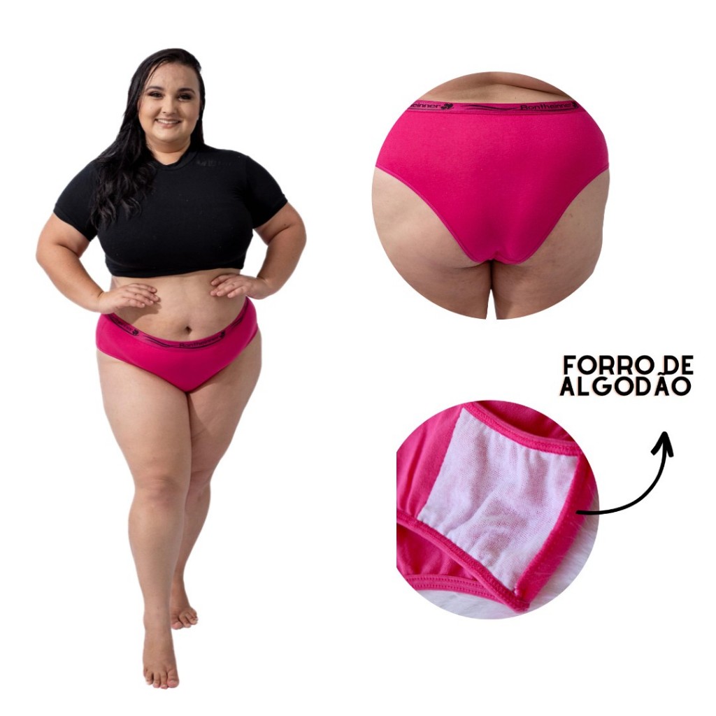 Kit 3 Calcinha Plus Size Algodão Cintura Alta