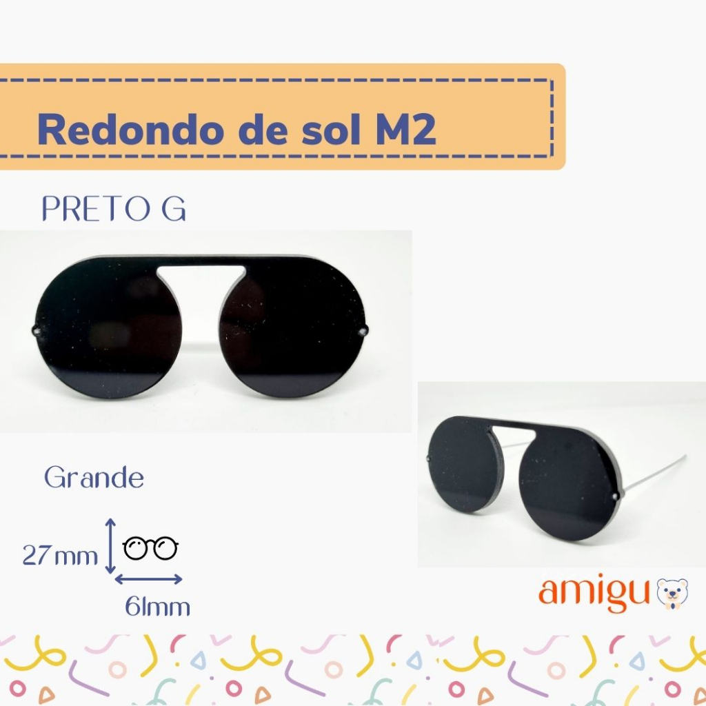 ÓCULOS DE SOL REDONDO MODELO 2 PRETO PARA AMIGURUMIS - leia o anúncio