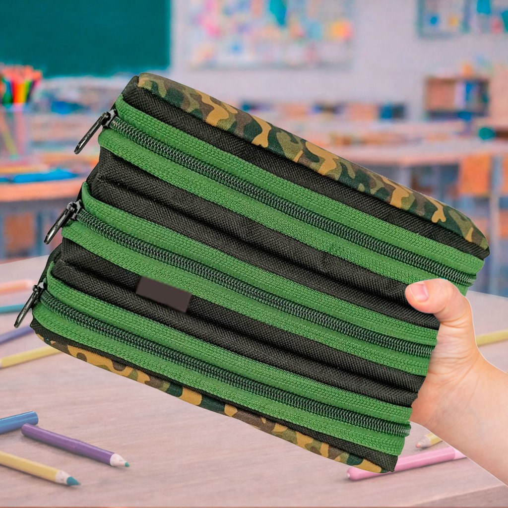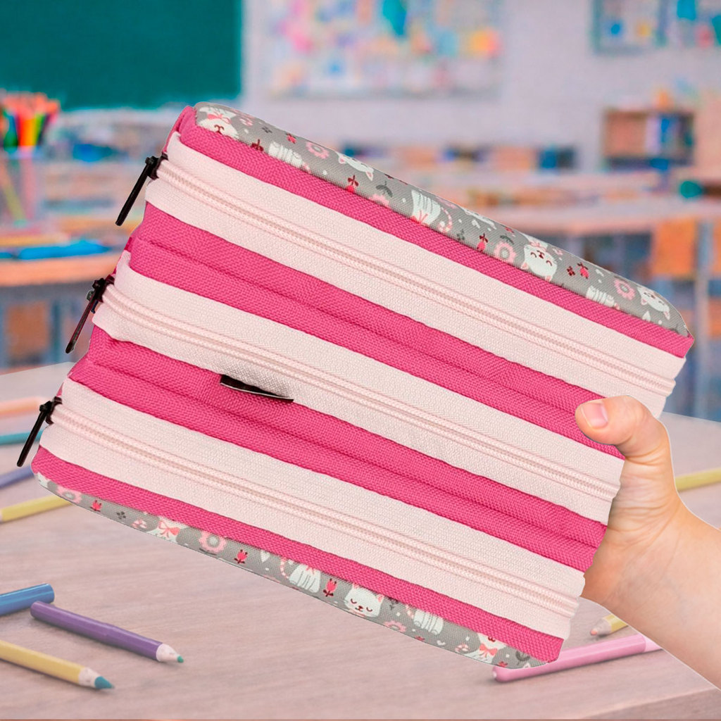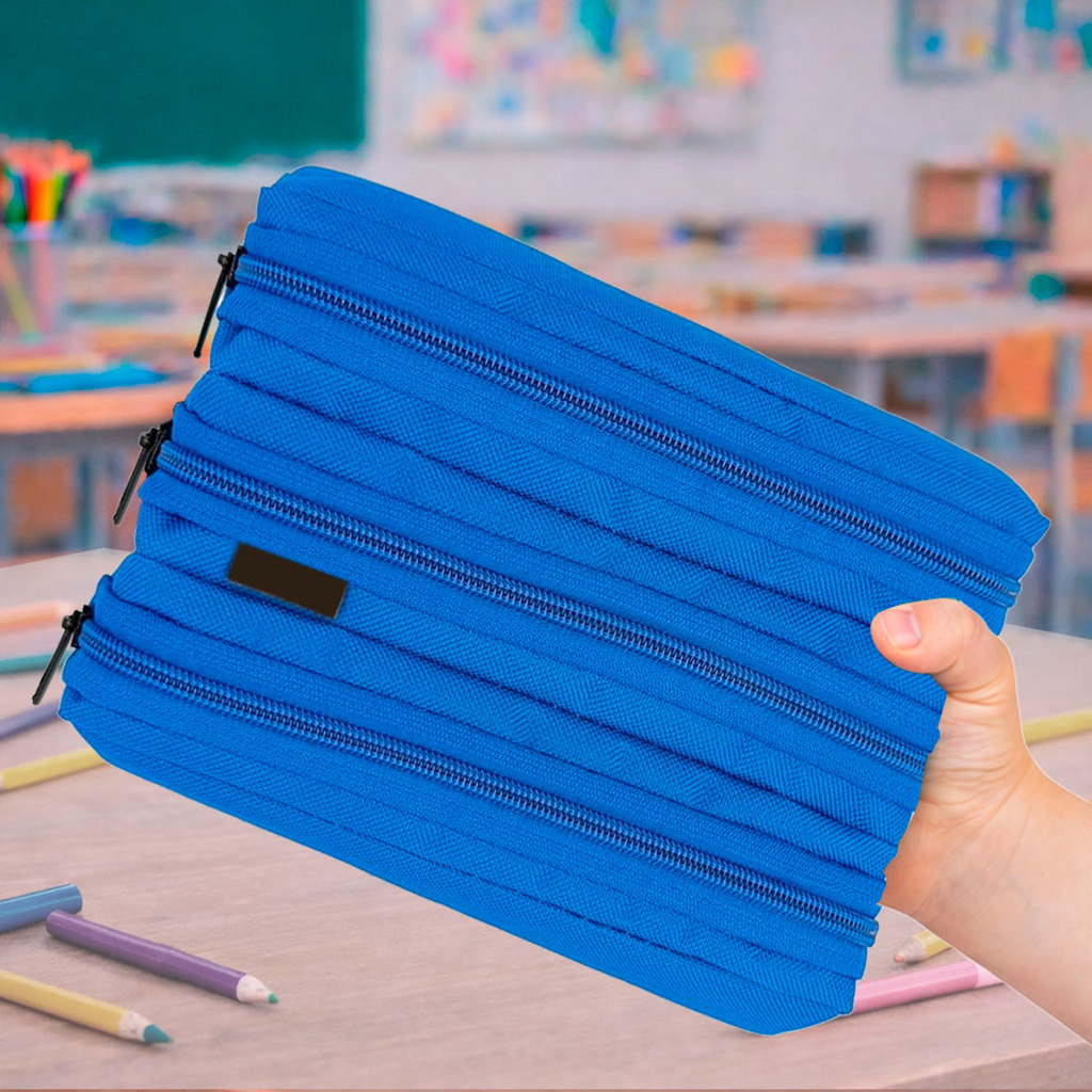 Estojo Escolar Infantil Triplo Menino Menina Colorido Tres Divisorias Organizador