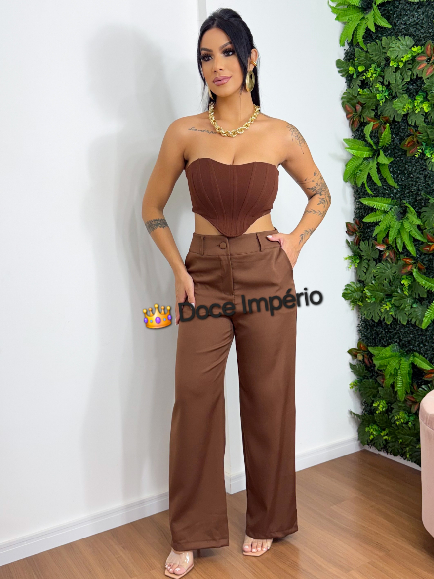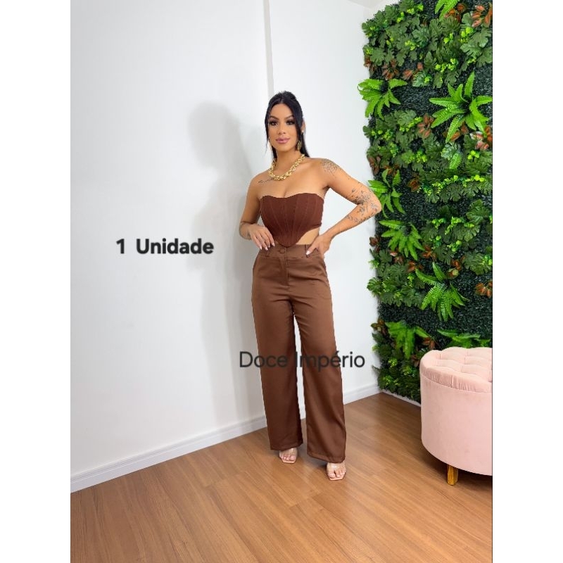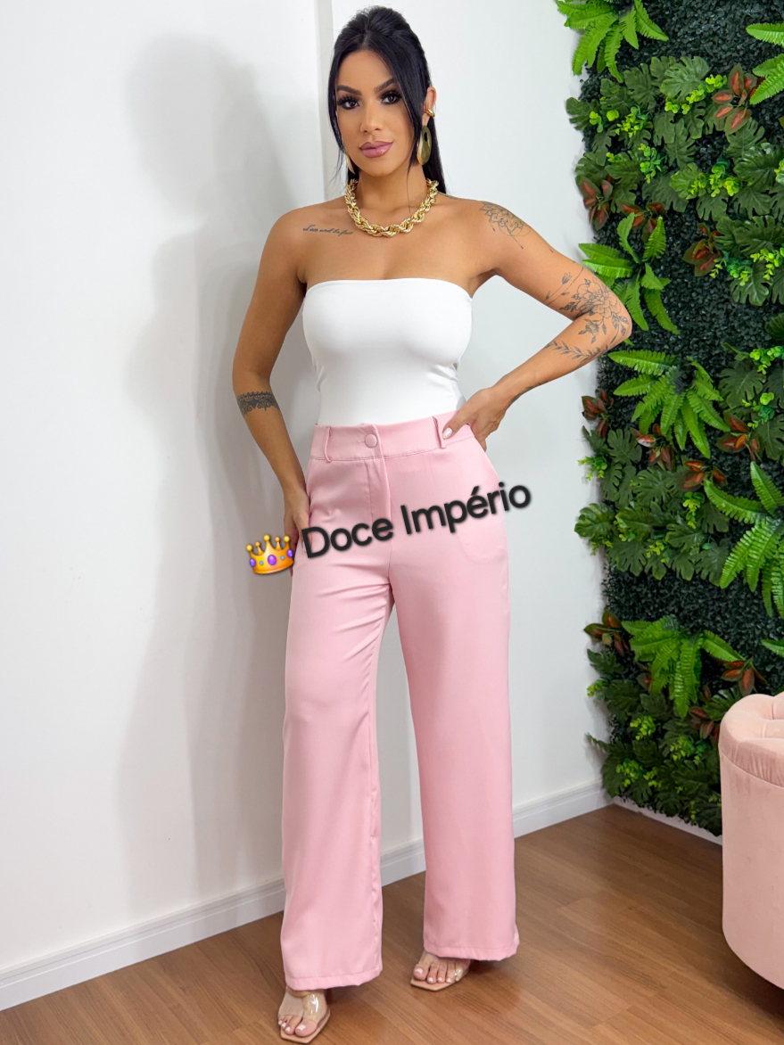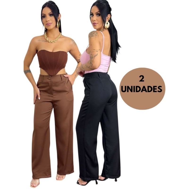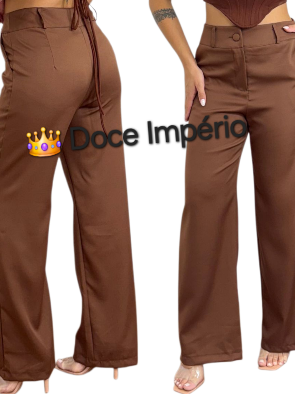 Calça Pantalona Alfaiataria Feminina Premium Cintura Alta Wide Leg Social Elegante com Bolso