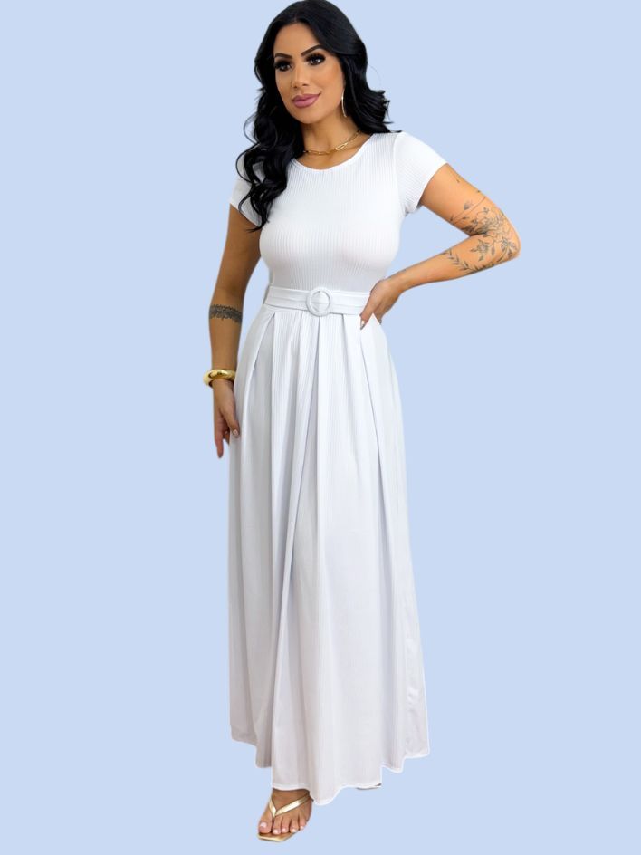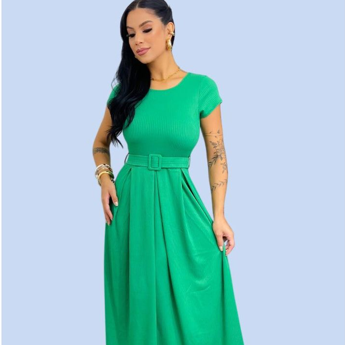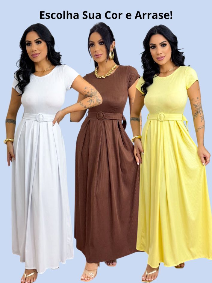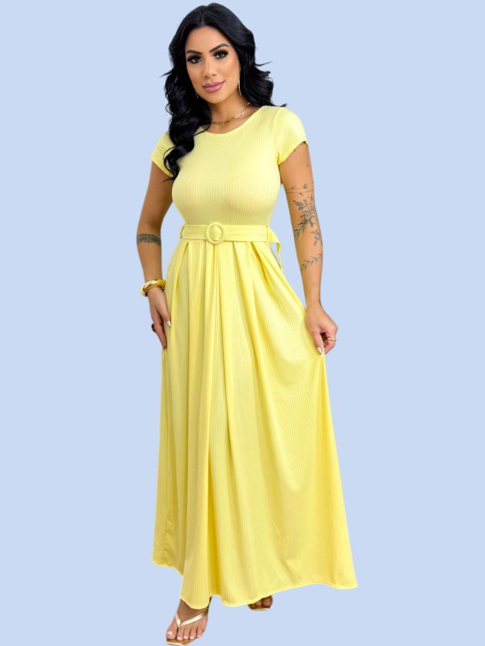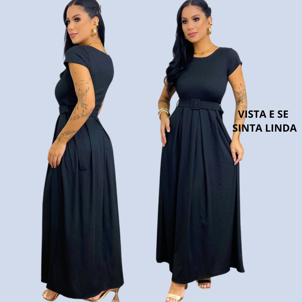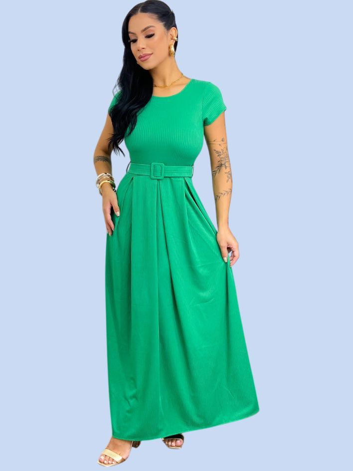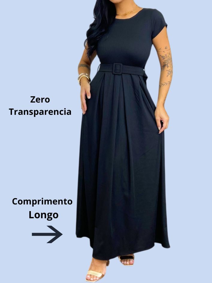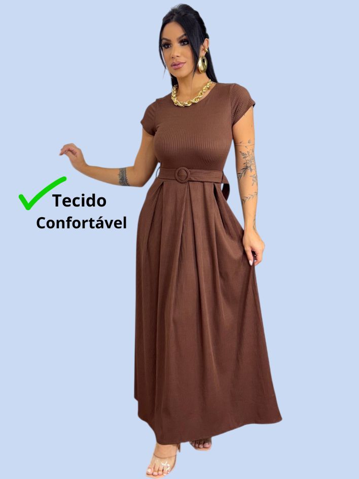 Vestido Longo Feminino Canelado Com Cinto Evangélico