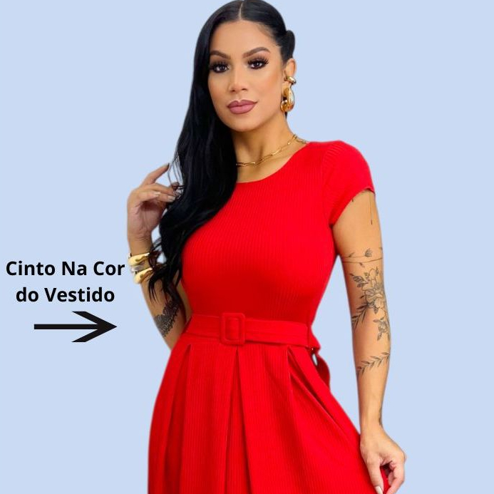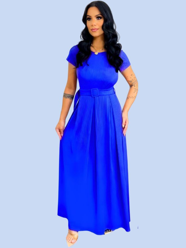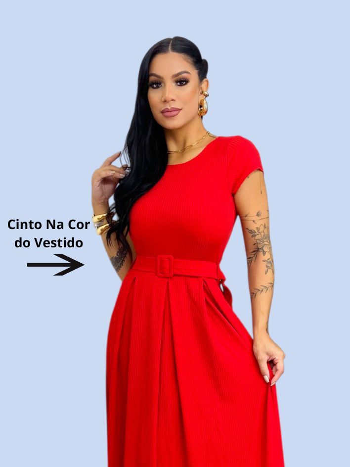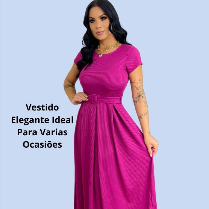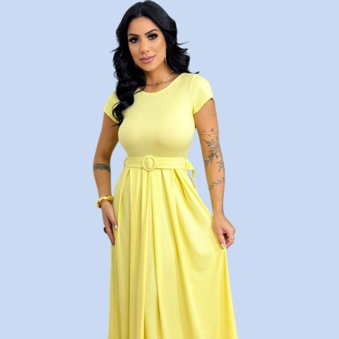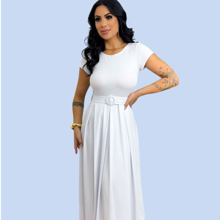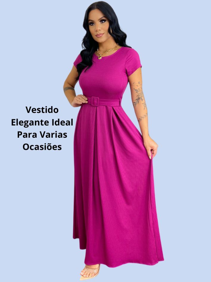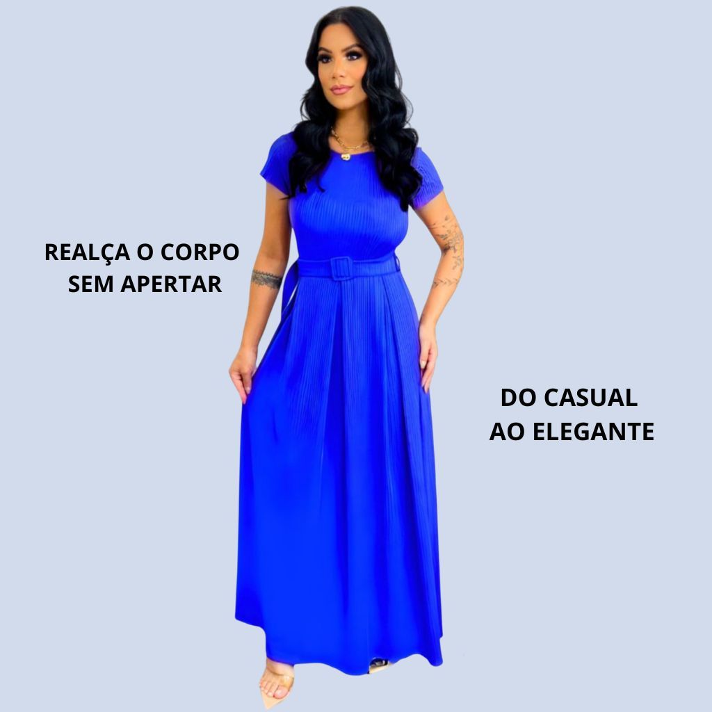 Vestido Longo Feminino Canelado Com Cinto Evangélico